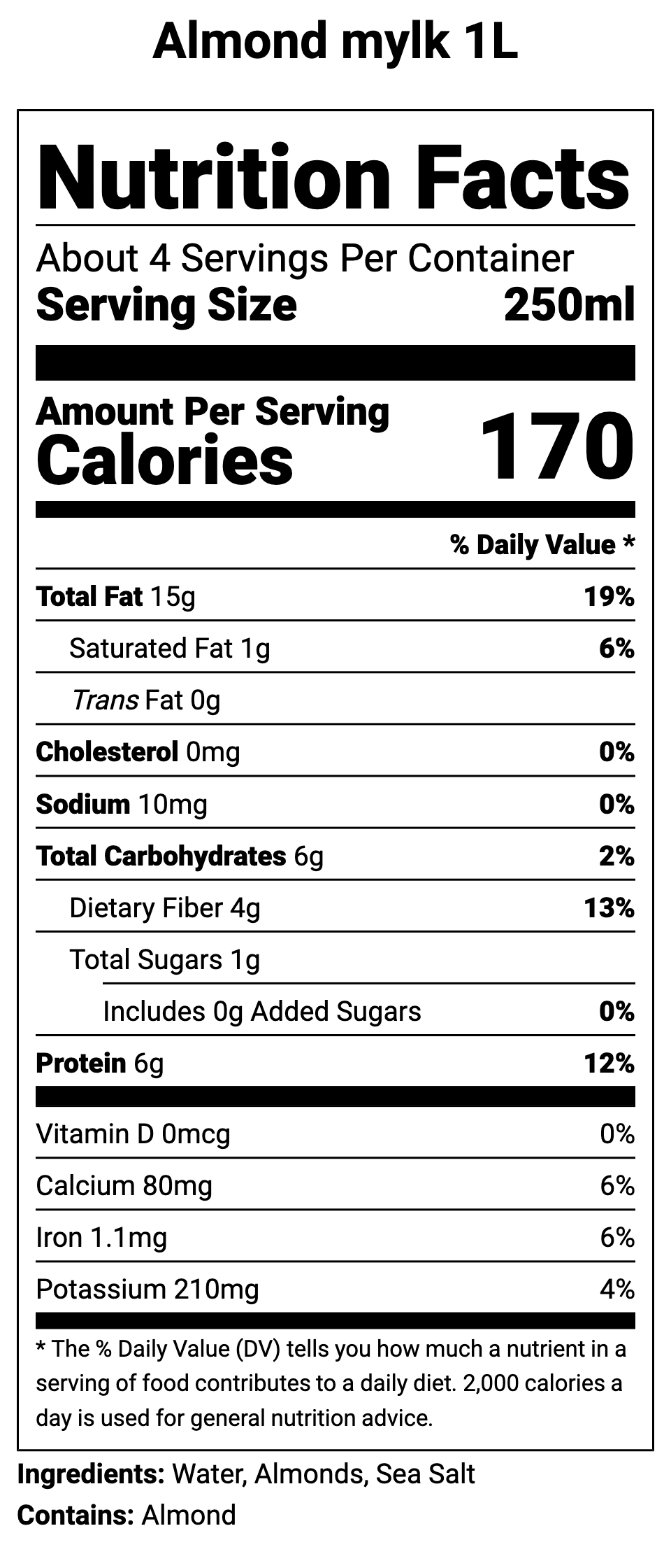 - 170g Almonds \ Liter - 51g Almonds \ 300ml