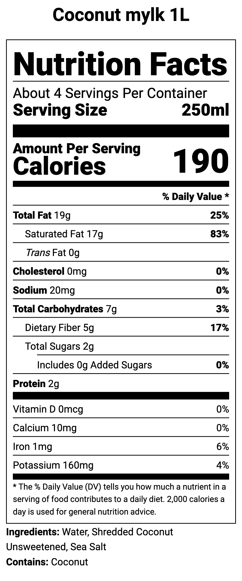 - 170g of Coconut Shreds \ Liter - 51g Coco Shreds \ 300ml